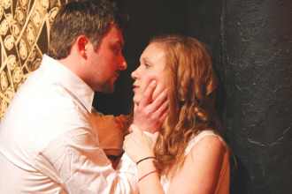 Hamlet (Kirk Gostkowski) tells Ophelia (Alyssa Van Gorder), “Get thee to a nunnery” in the