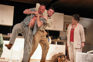 verge of success, who is trying to finish up a project while house-sitting for Mom; and Mr. Pallister as Lee, a beer-chugging, foul-